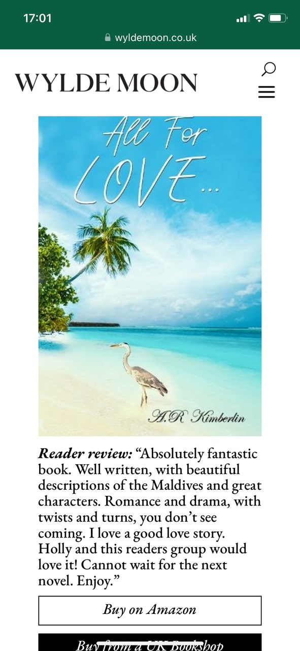 All For Love, is now being advertised on Holly Willoughby’s, Wilde Moon Library, in the best Romantic reads of 2024. Fantastic start to the year and will hopefully be hearing some good news soon, ........